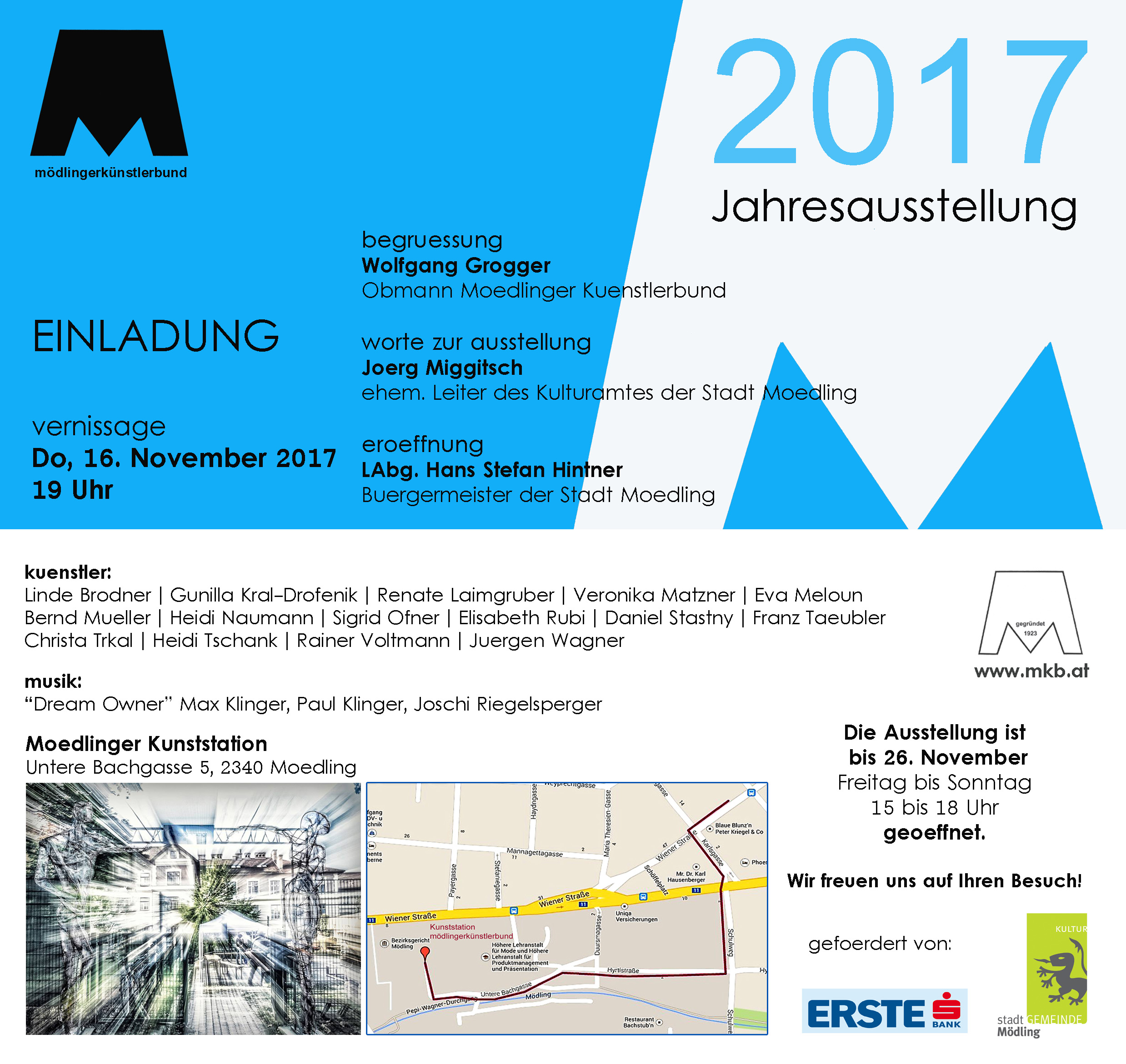 Vernissage: Donnerstag, 16. November 2017, "Mödlinger Kunststation"